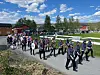 Folket samlet seg ved Rindal helsetun for å høre hilsen fra ordfører Mildrid Kattem Aune som pratet om utenforskap og at det alltid er plass til en til rundt bordet. Hun uttrykte stolthet over bygda vår og roser dugnadsånden vi har, som hun beskriver som unik. Selv om det var noe overskyet var det varmt å stå ute i dag, noe fant steder å sitte, mens andre la seg ned.