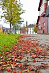 Her har jeg dristet meg inn i en hage for å få et bilde av dette flotte treet. Kanskje ei lønn? Du kan så vidt skimte kirka på Kjerklandet i bakgrunnen.