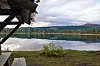 Fra badeplassen på Igltjønna. Perfekt lite trekk for fotografen, men ikke for bålbrennerne, røyken legg seg over skogen.Foto: Eli Solvik