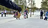 De yngste i aksjon, det er tryggest å ha med en foresatt på den 500 meter lange runden.