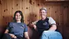Norun Gjeldnes og Hanne Waag slapper av etter skytinga. De kaller seg henholdsvis nybegynner og veteran.Foto: Eli Solvik