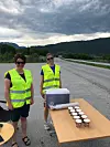 Langs løypa hadde frivillige frå Surnadal hornmusikk stilt seg opp som vegvisarar og med drikkestasjonar.