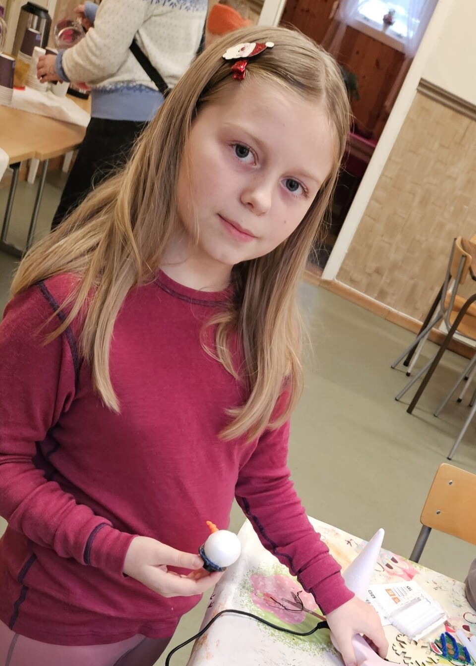 Underveis kunne alle kose seg med nybakte boller som Selma, Tuva og Agnes hadde bakt. De falt i god smak hos sultne kunstnere. Nykokt gløgg og saft hører så klart også til på et godt julearrangement.
