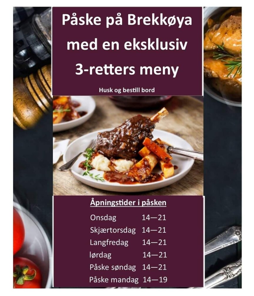 Brekkøya Camping kan by på eksklusiv tre-retters middag i påska.