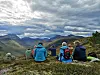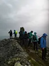 Med toppen i sikte slo det om frå søraust til vestavind og regn. Etter rådslaging vart det stemning for å fortsette.