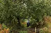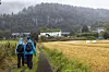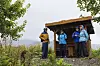 Oppå diktarheimen til Hans Hyldbakk "inntok" vi scena og hadde det heilt topp med kaffekopp og vidt utsyn over bygda. Kven kunne ved oppstarten tru at det vart mogleg å sjå noko som helst gjennom skodde og regn i dag?