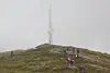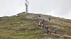 Målet i sikte! Litt vind i tillegg til regn og skodde på toppen.