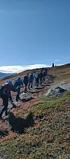 På toppen av Gråfjellet fikk vi en storslagen utsikt med fjellrekka i 360 grader, tok en lengre pause og nistepakken smakte godt i den milde høstlufta.