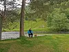 17 trimmarar, med og utan stavar, hadde våga seg ut i det usikre veret. Første stopp vart ved gapahuken som det stod Fosstrøinn på. Stien svinga no meir inn i skogen, før vi etter kvart kom fram til bygdavegen. Straks svinga vi av igjen og gjekk på fin nyslått sti bort til gapahuken ved Nessaøra.
