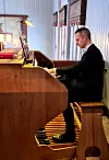 Kantor Bjørn Vevang sørga for sprudlande tonefølgje til salmane, som vanleg!Foto: Ole Trygve Foseide