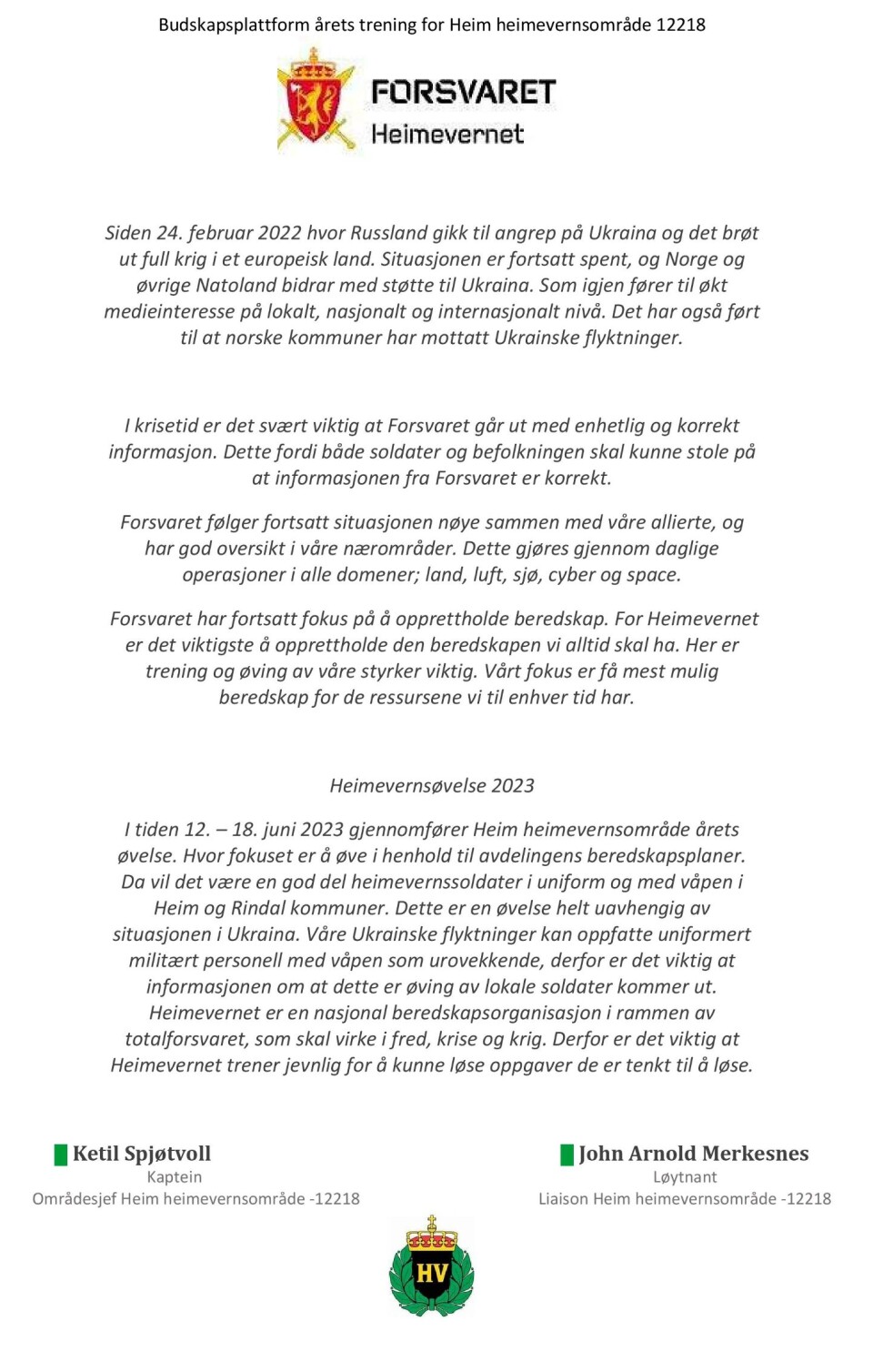 Heimevernsøvelsen gjennomføres uavhengig av konflikten i Ukraina, melder Forsvaret.
