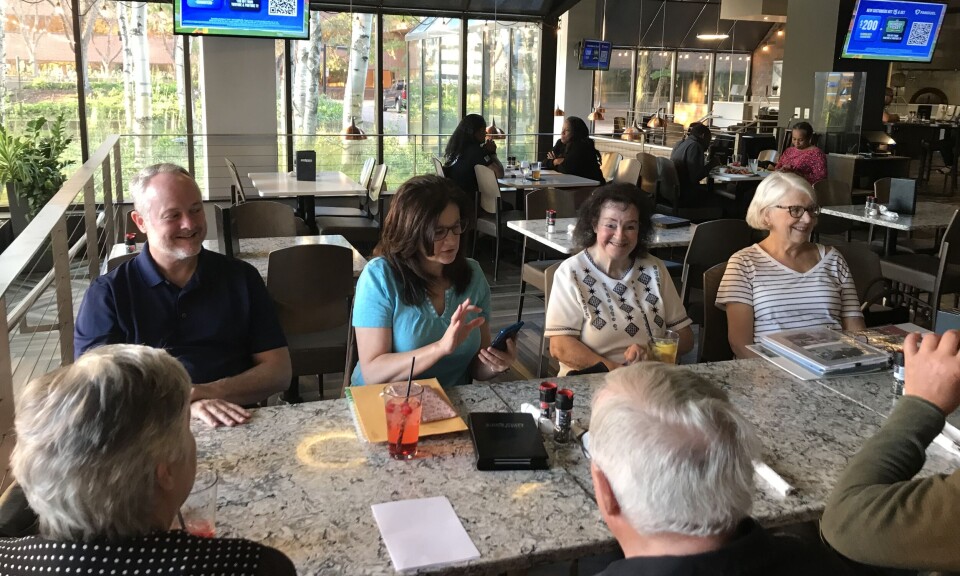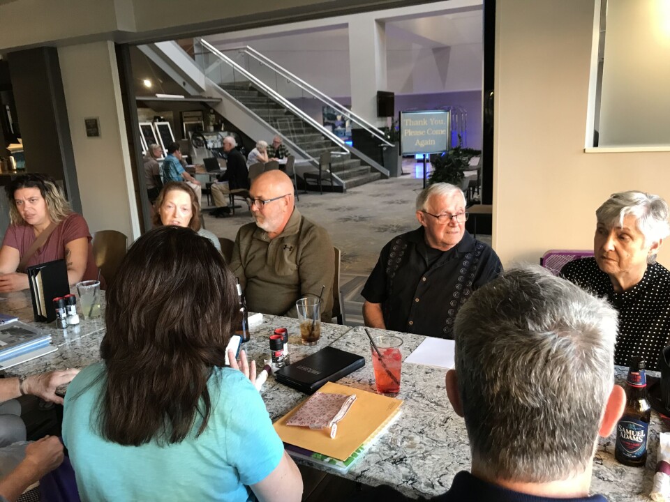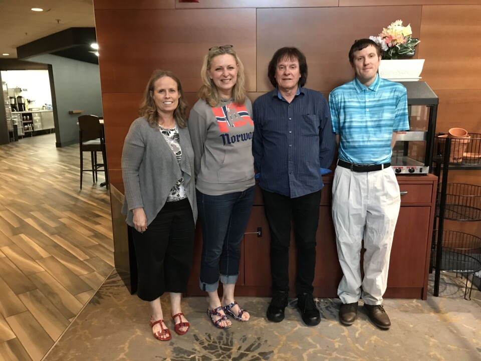 Jeg hadde avtalt med et 30-talls etterkommere av utvandrere fra Rindal at vi skulle møtes på hotellet utover fra kl 16. Nesten alle dukket opp, og praten gikk mellom de besøkende og representanter fra reisegruppa om familie, slekt, norske tradisjoner, og alt mellom himmel og jord. Det ble et første møte for mange som tidligere bare hadde kommunisert med hverandre på facebook-sida «Rindal: Living descendants in Norway and abroad» og på andre måter.