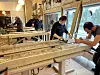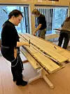 På et slikt kurs bruker skimakeren vanligvis å ha med åtte deltakere, og i Rindal er det fullbooket, med fem kvinner og tre menn. Kurset går fra fredag til mandag, og såpass lang tid må det være, forteller Aslaksby. Trollheimsporten er innom på dag to, og han viser at det fortsatt er mye arbeid igjen før skiene er klare til å dampes og bøyes.