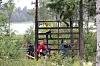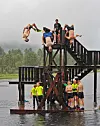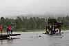 Økta ble avslutta med bading, like greit siden alle var gjennomvåte av regnet. Selvfølgelig var det mange spektakulære stup, disse tre guttene imponerte med synkron-stup.