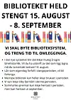 ANNONSE: Surnadal bibliotek Biblioteket held stengt 15. august til 8. september Publisert 11.08.2025 - 15:30 annonse surnadal kommune surnadalsnytt kultur surnadal bibliotek