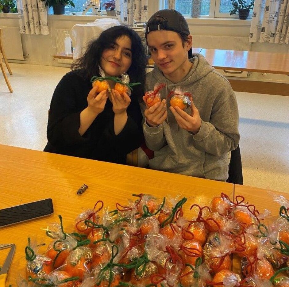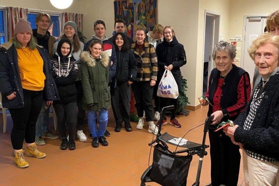 NoFo-elevar laga julekort og juleglede-pakkar til bebuarane på sjukeheimen