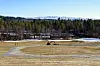 Anleggsmaskiner i skråning mellom gårdsbygninger i åslandskap