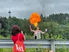 Både politi, brannvesen, ambulanse og russebiler kjørte i paraden. De siste var hyret inn for å spille musikk på veien opp til Skei. Den store overraskelsen for dagen var flammesluker Sara Nicole Andersen, som blåste ild til stor applaus fra publikum.