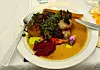 Eit svært velsmakande treretters måltid vart servert. Heile menyen og alt tilbehøret bestod av råvarer frå lokale produsentar og speglar mangfaldet av lokalmat i regionen.