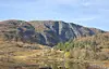 Lett å gå etter turstien. Den spisse Hjelmen i bakgrunnen.