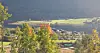 Nærmer oss Skrøvsetsetra. Skimter setra nesten midt i bildet.