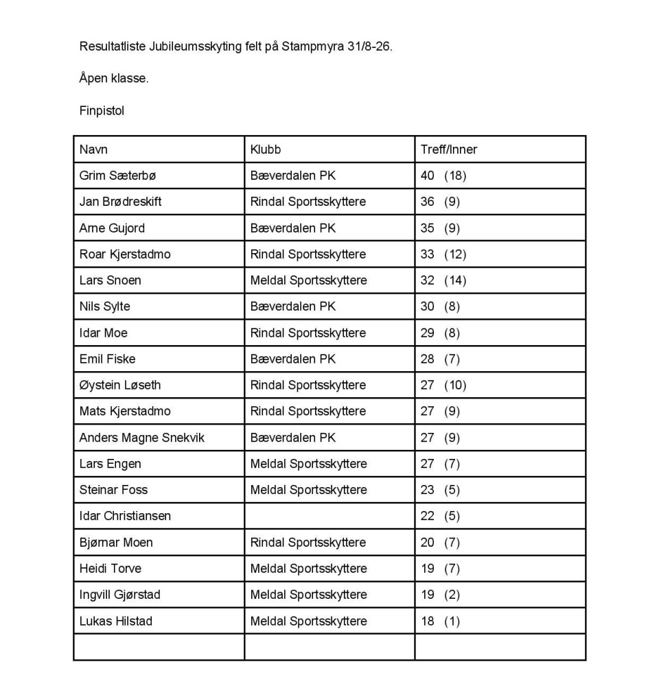 I tillegg til klubbens egne skyttere hadde de invitert pistolskyttere fra Bæverdalen pistolklubb  og Meldal Sportsskyttere.