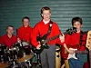 Bandet RedBulls. Fra venstre Olaf Karlstrøm (slagverk), Olav Nergård Tørset (slagverk), Jo Sverre Sande (gitar og vokal) og Jon Andreas Nerbu Baalsrud (gitar). 20. mars 2002.Gunnar Bureid
