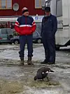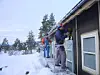 Husbygging i vinterkulde, 8. januar 2004. Nordre boligfelt. Even Langli (borterst) og Olav Halgunset.