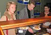 Fiskekaker i lange baner. Norsk Kvalitetsmat AS, mens de ennå holdt til i lokalene etter nedlagte Rindal Meieri. 4. mars 2003.