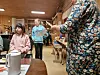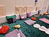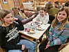 Ved et bord hadde damene Sunniva Fiske, Tone Sæther og Eleah Sæter plassert seg med godsaker på tallerkenene. De lover å vise det de har laget, men tallerkenene må tømmes først. Da vi spør hva som er artigst, nevner de å sy med maskin og å bruke svipenn. Men egentlig det vanskelig å velge mellom aktivitetene, for: