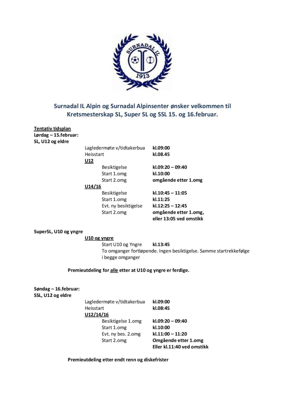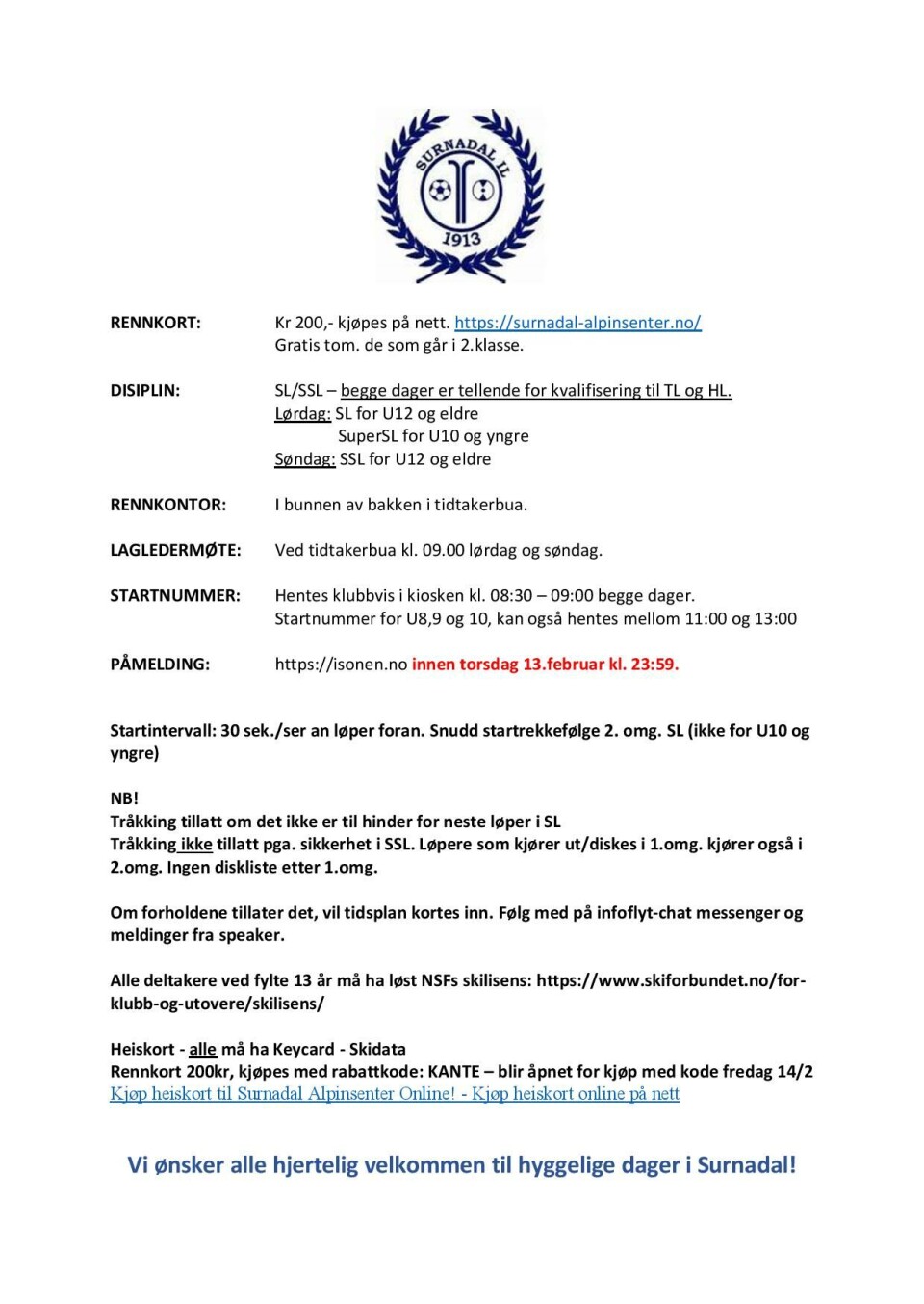 Surnadal IL Alpin arrangerer kretsrenn i Sæterlia kommende helg.