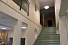 En av trappene opp til 2. etasje. Ned til venstre vil biblioteket være